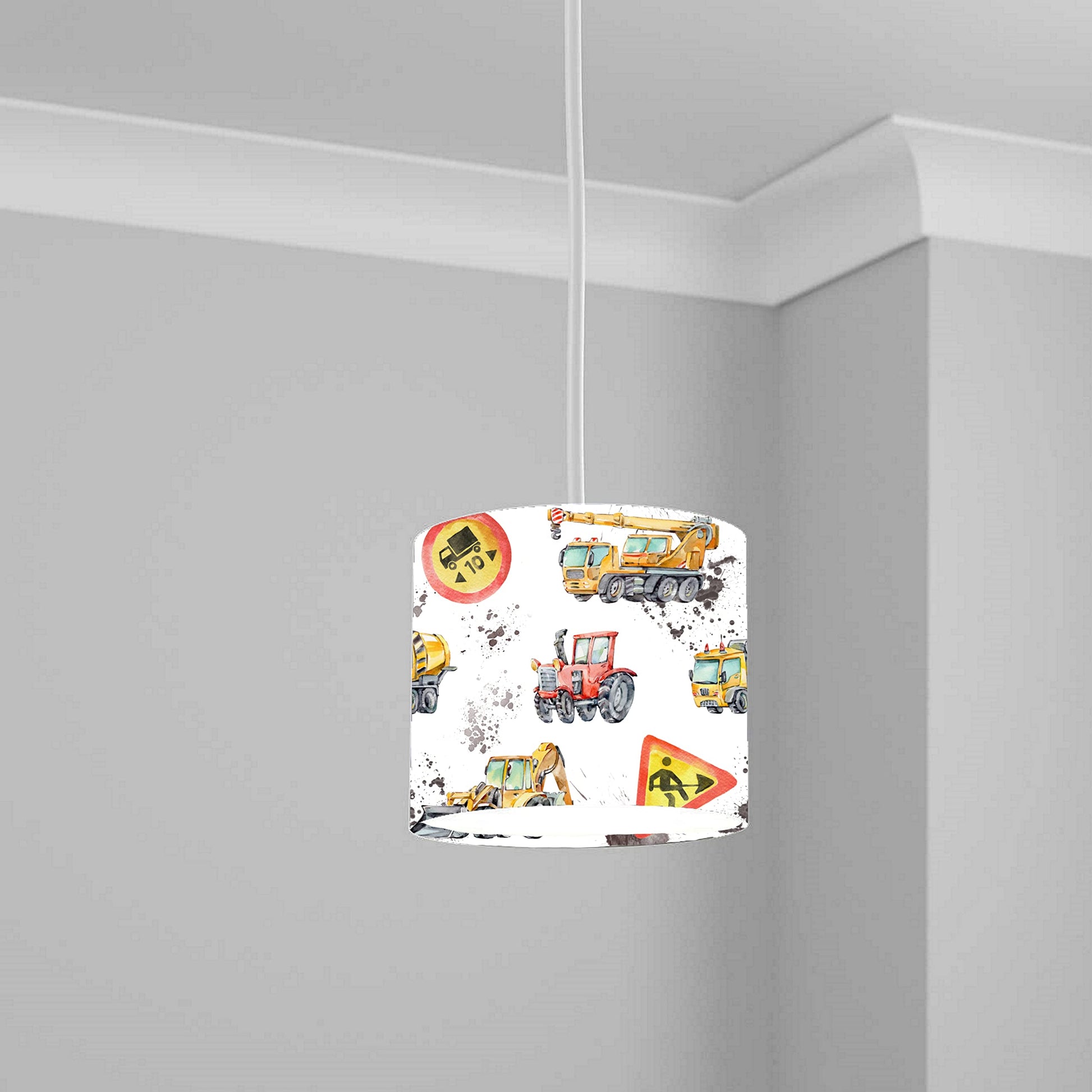 Colorful Construction Vehicles Ceiling Lampshade Lightshade for Nursery - 20cm x 18.5cm