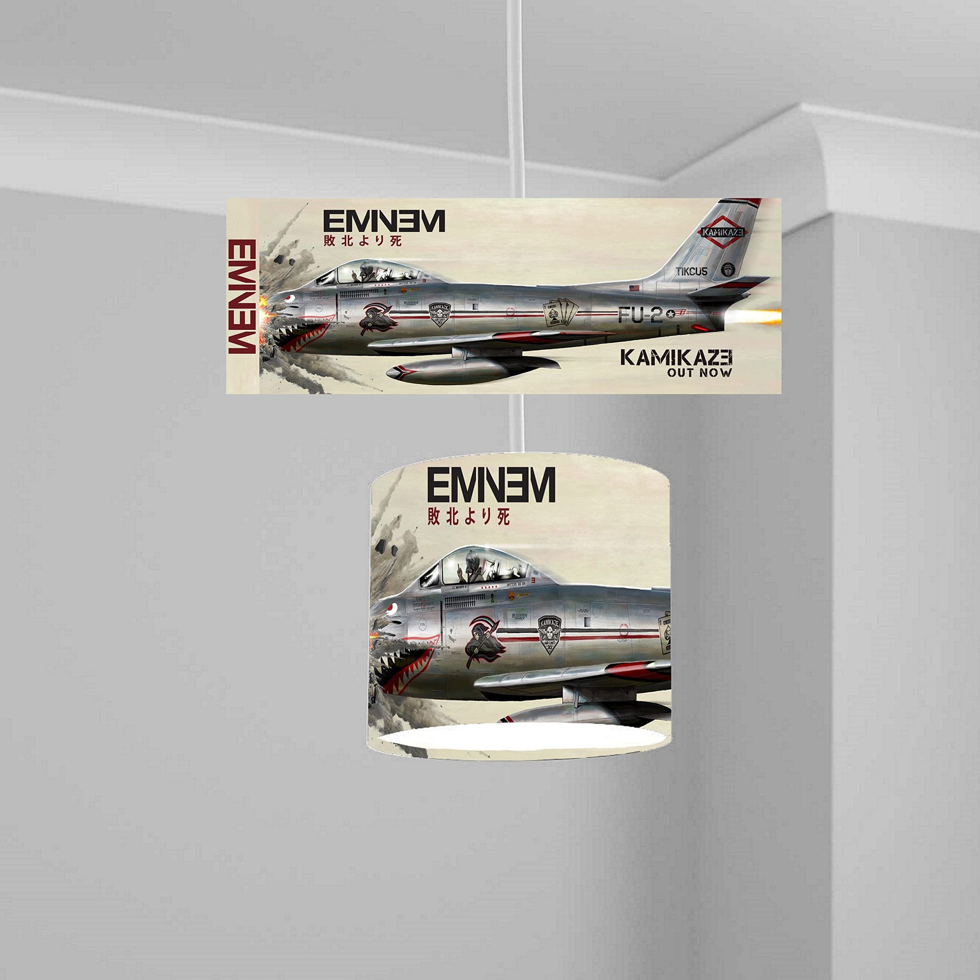 Transform your room with this striking Kamikaze fighter jet ceiling lampshade lightshade. Measuring 20cm x 18.5cm, this unique design adds a bold touch to any space. Perfect for fans of aviation and dynamic decor, the lampshade features a detailed illustration of a fighter jet, enhancing the ambiance with its edgy aesthetic. Crafted for easy installation, it seamlessly fits into any room, offering a stylish focal point. Elevate your interior with this conversation-starting piece, ideal for bedrooms, living rooms, or hobby spaces.
